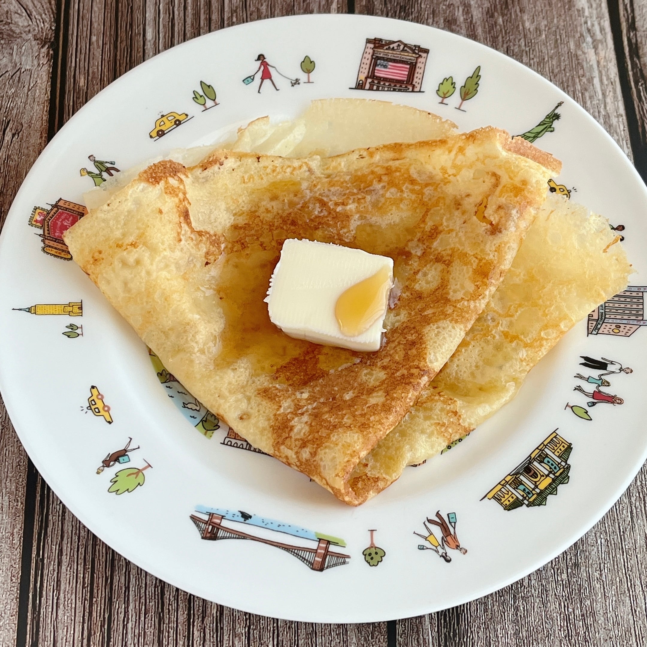 ❹フライパンを中火で熱し、薄く油(分量外)を塗って、生地を入れて薄く広げ、表面が乾くまで焼く。